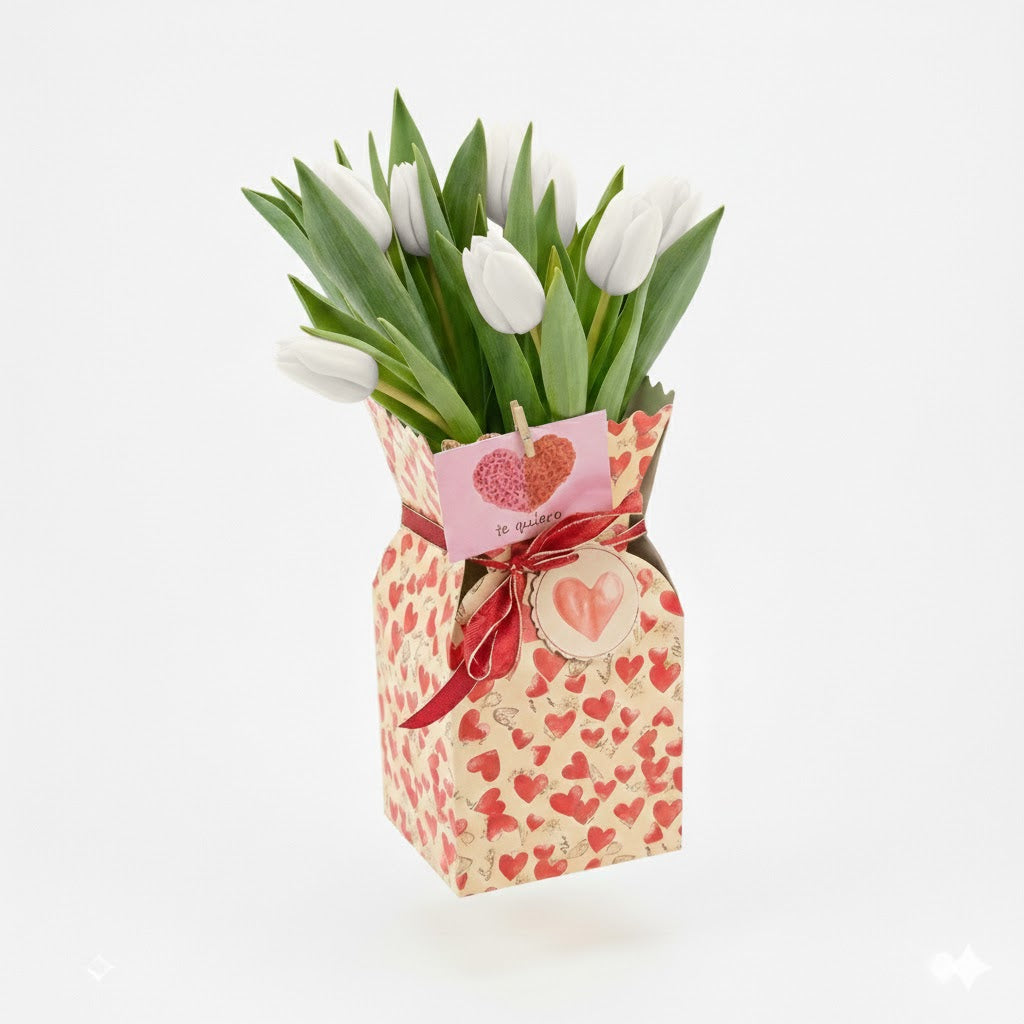 Los tulipanes rojos simbolizan el amor produndo, la pasión ardiente y el deseo romántico, siendo una forma ideal de declarar sentimientos intensos, un amor verdadero y un compromiso duradero, perfectos para ocasiones como San Valentín o aniversarios.