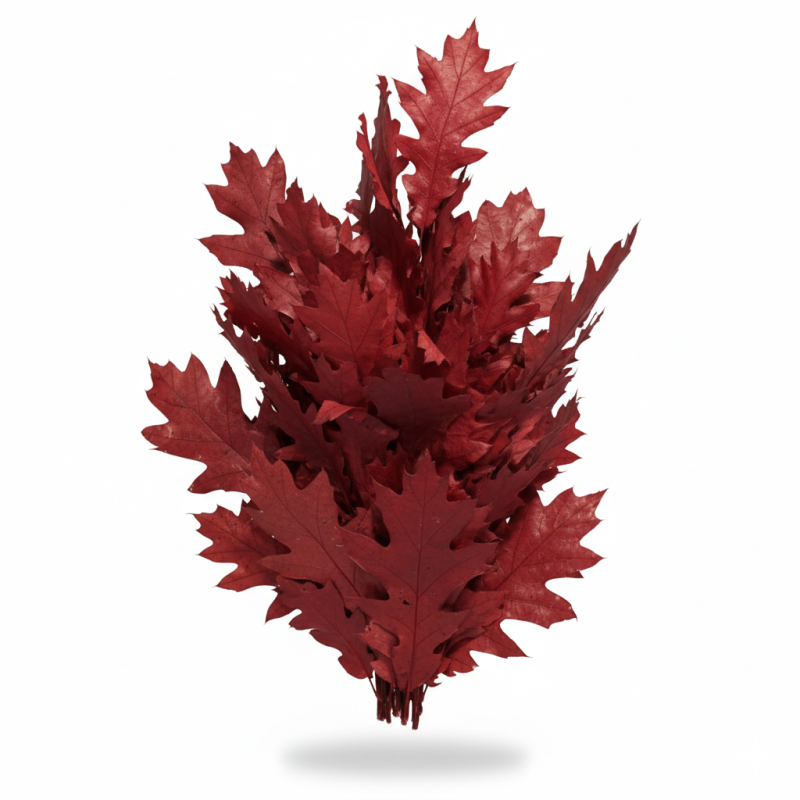 El roble tintado rojo es la elección perfecta para dar un toque cálido, elegante y profundamente navideño a tus decoraciones. Sus hojas anchas y texturizadas, teñidas en un rojo intenso, aportan presencia y carácter a coronas, centros de mesa, arreglos DIY o jarrones festivos. Su color, tan propio de la temporada, transforma cualquier rincón en un espacio acogedor y lleno de magia navideña. Además, al secarse mantiene su forma, permitiéndote disfrutarlo durante toda la Navidad y más allá.