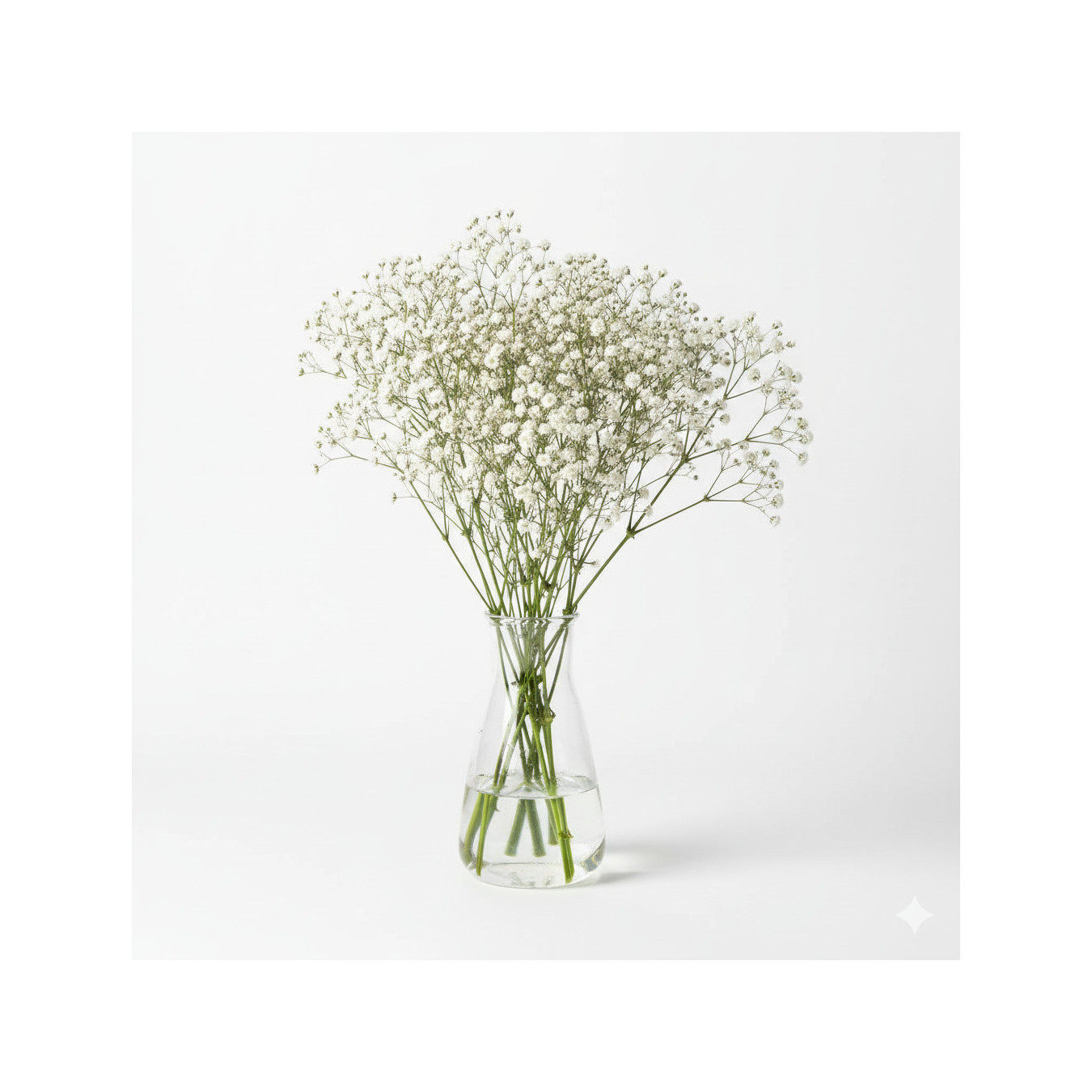 La paniculta blanca es una flor fina y vaporosa que aporta ligereza y equilibrio visual a tus composiciones. Su estructura delicada y su color neutro hacen que combine especialmente bien con flores más estructuradas como las rosas rojas, realzando su presencia sin restar protagonismo.