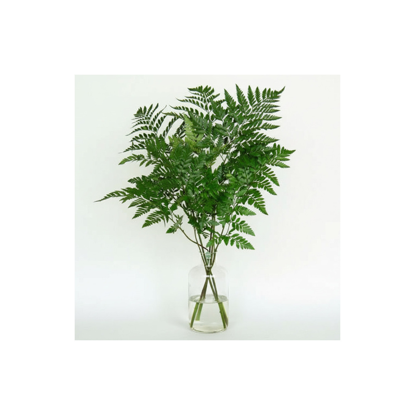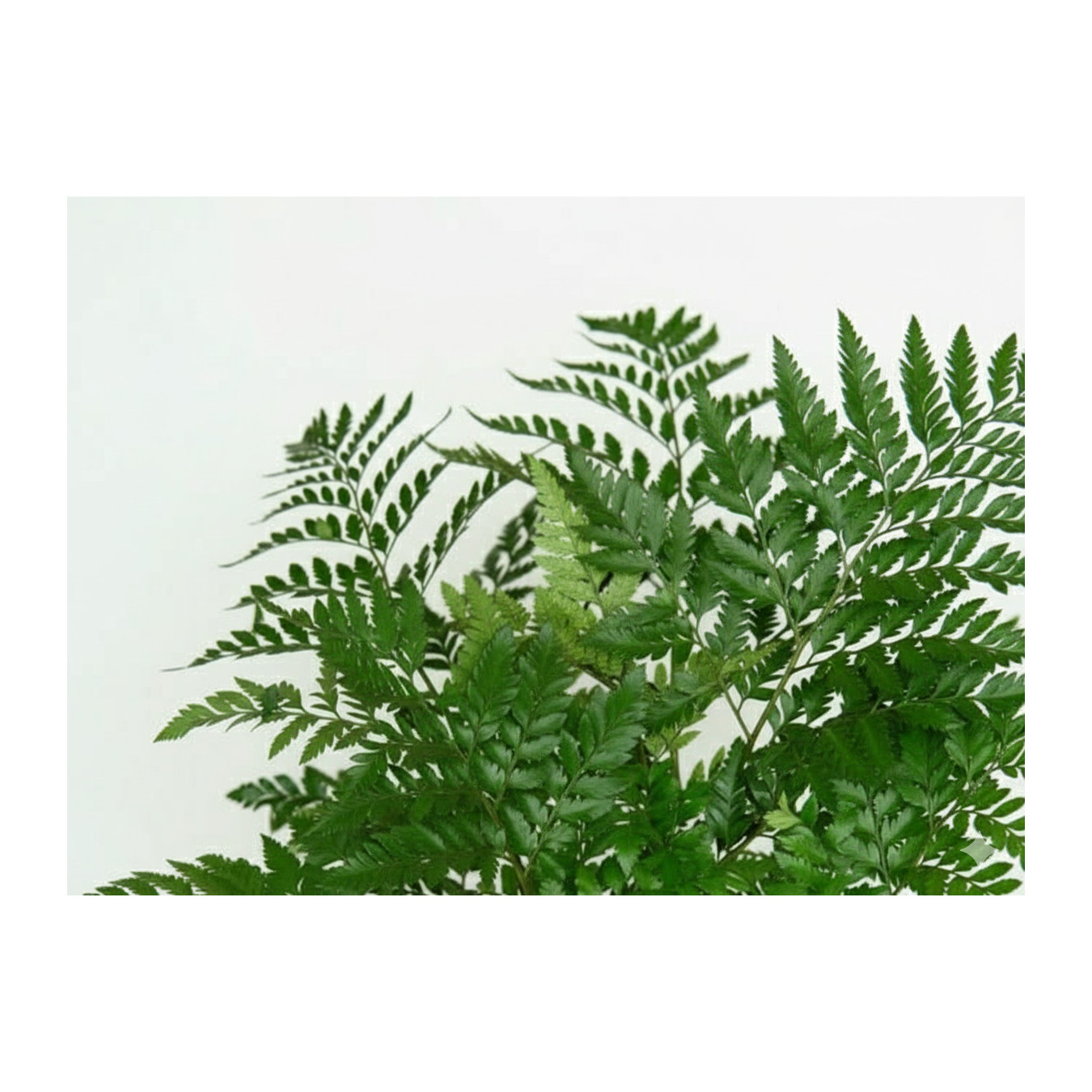 Pack de 5 tallos de helecho de cuero, un follaje de textura firme y color verde intenso, muy valorado por su resistencia y larga duración en flor cortada. Es ideal para dar estructura, volumen y contraste a composiciones florales, sin restar protagonismo a las flores principales.