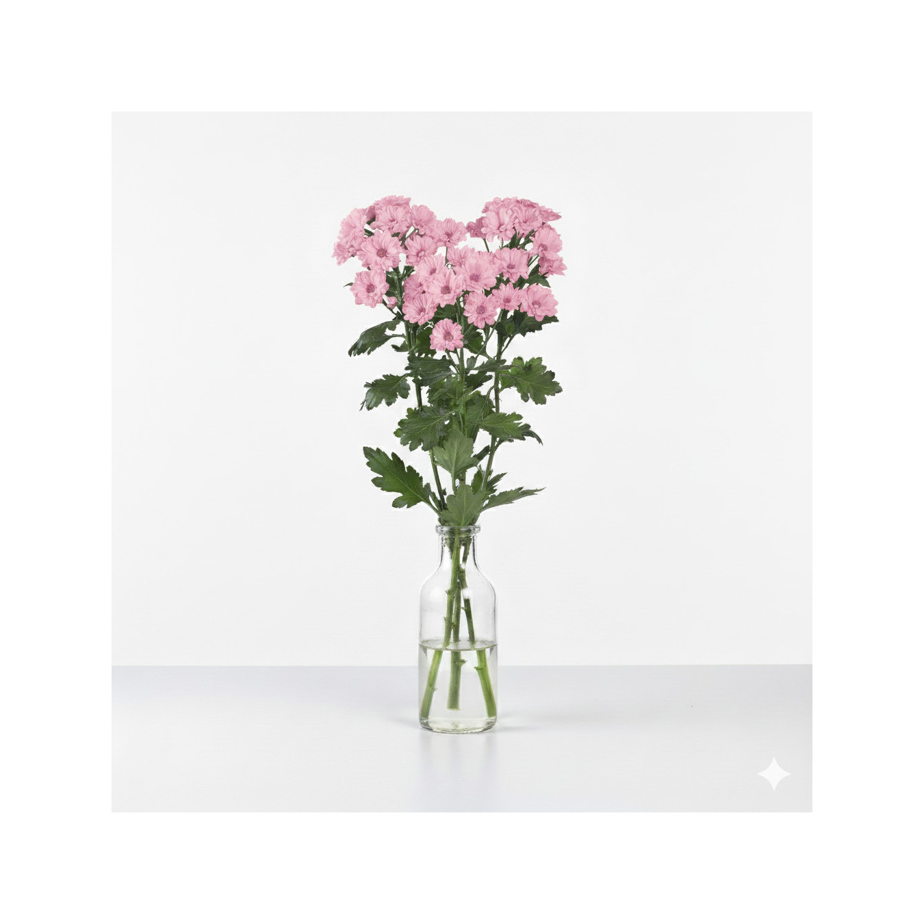 Pack de 5 tallos de margarita rosa, cultivados en la Región de Murcia y Chipiona, reconocidas por su producción de flor cortada de calidad. Esta flor destaca por su forma sencilla, su frescura y su excelente durabilidad, lo que la convierte en una opción ideal para todo tipo de composiciones.